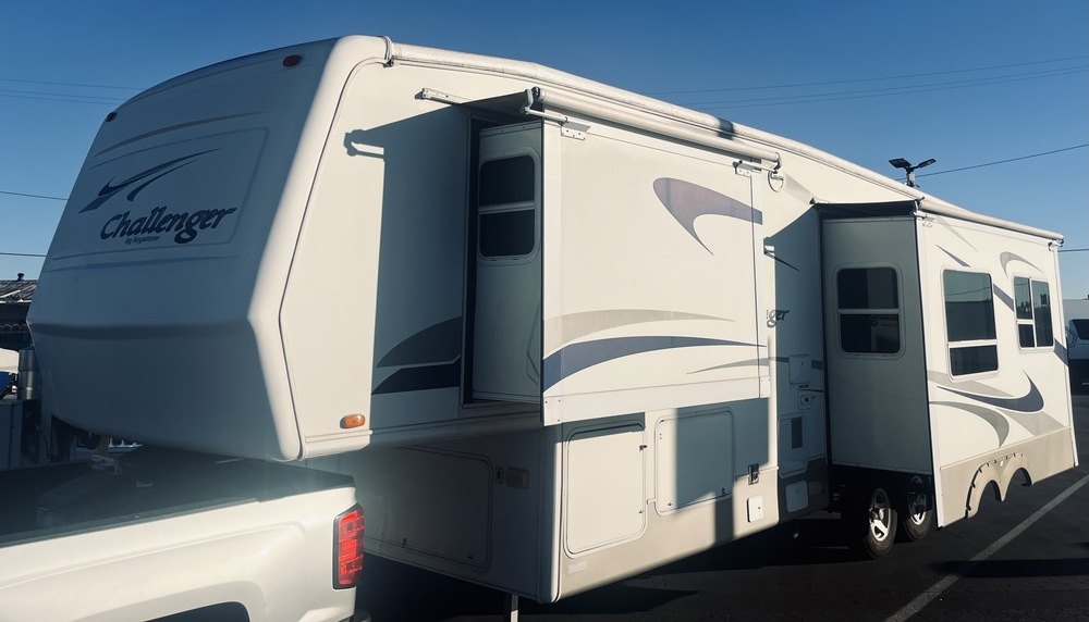 Completely redecorated interior, newer coated roof, new AC, new WH, LED light replacement, new flooring, new landing gear, new bath fan, new virtuous china toilet, new motorized awning, new TV and sound bar, 2 solar panels and controller w 2 12v batteries, good tires, new couch, new sinks & faucets. Must See!