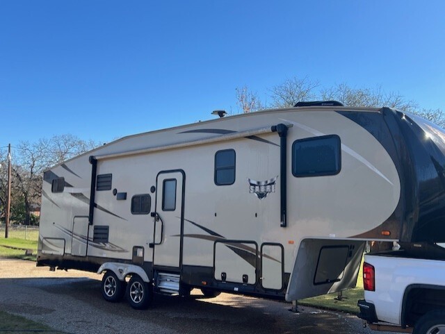 All items are fully functional in the trailer. Comes complete with a back-up camera to help in not only backing up but also traveling down the road. Has always been stored under cover. Tires are only 1 year old. Only blemish is cracking of the seat and love seat coverings.