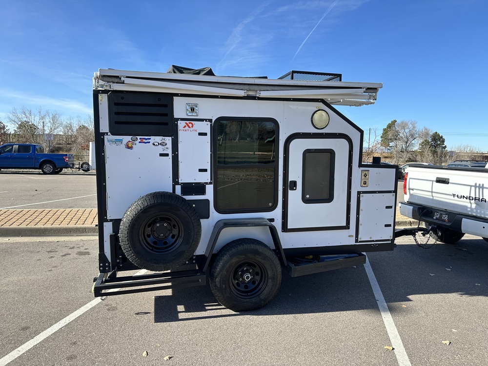 Custom teardrop trailer. I could not find a teardrop manufacture that had all options I wanted. Interior cab with full queen size memory foam mattress (nectar), back kitchen with three burner cooktop stove, microwave and three-way refrigerator&freezer, 33 gallon freshwater tank, 27 gallon gray water tank, trailer is a four season with heated water lines and tank locations, tankless hot water heater and exterior shower, AC unit, propane furnace, one 100w solar panel mounted on top with extra line connection for remote panel, electrical closet with inverter, converter, shore power, solar charger, XL rooftop tent with heat stack from the furnace that sleeps 2 to 3 adults or 3 to 4 children, six fly rod locking case, powder coated custom store rack, 11 foot awning, custom lighting and charging ports both usb and 12-volt throughout, four corner heavy duty stabilizer jacks, dual propane mount, pantry area at exterior door, two storage areas, one on the front tongue and one on the side along with powder coated toolbox on tongue, frame is powder coated and the underside is bed-liner sprayed, same size spare tire.