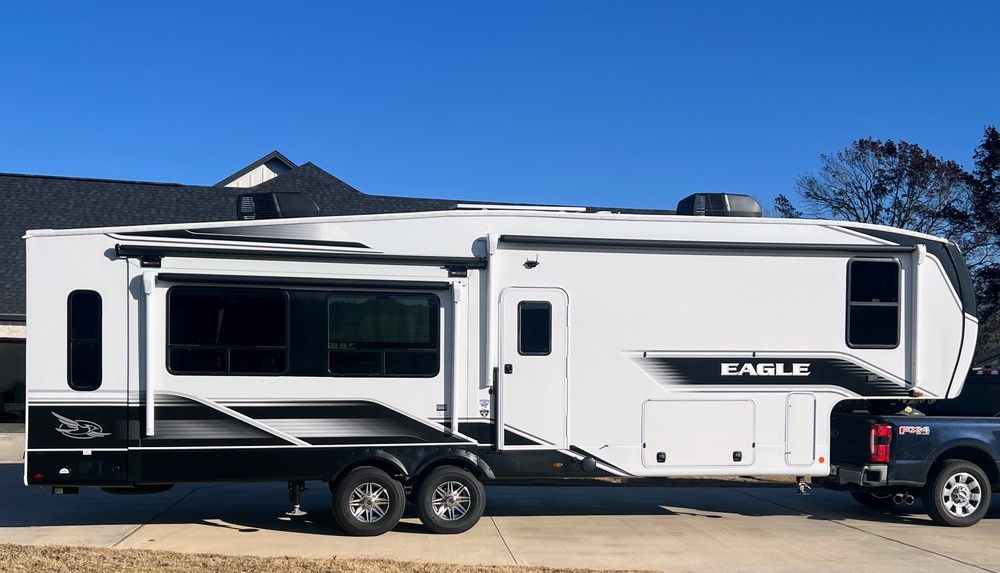 Our mistake is your win! Listed well below any dealer price with no dealer fees! We drove it home after purchase, parked it in our heated/air conditioned shop and it is now for sale at a steal. 2024 JAYCO EAGLE 321RSTS is a stunning Fifth Wheel trailer designed for comfort and luxury on the road. With only 200 miles on the tires, this brand new model is ready to take you on your next adventure. IT HAS NEVER BEEN CAMPED IN!