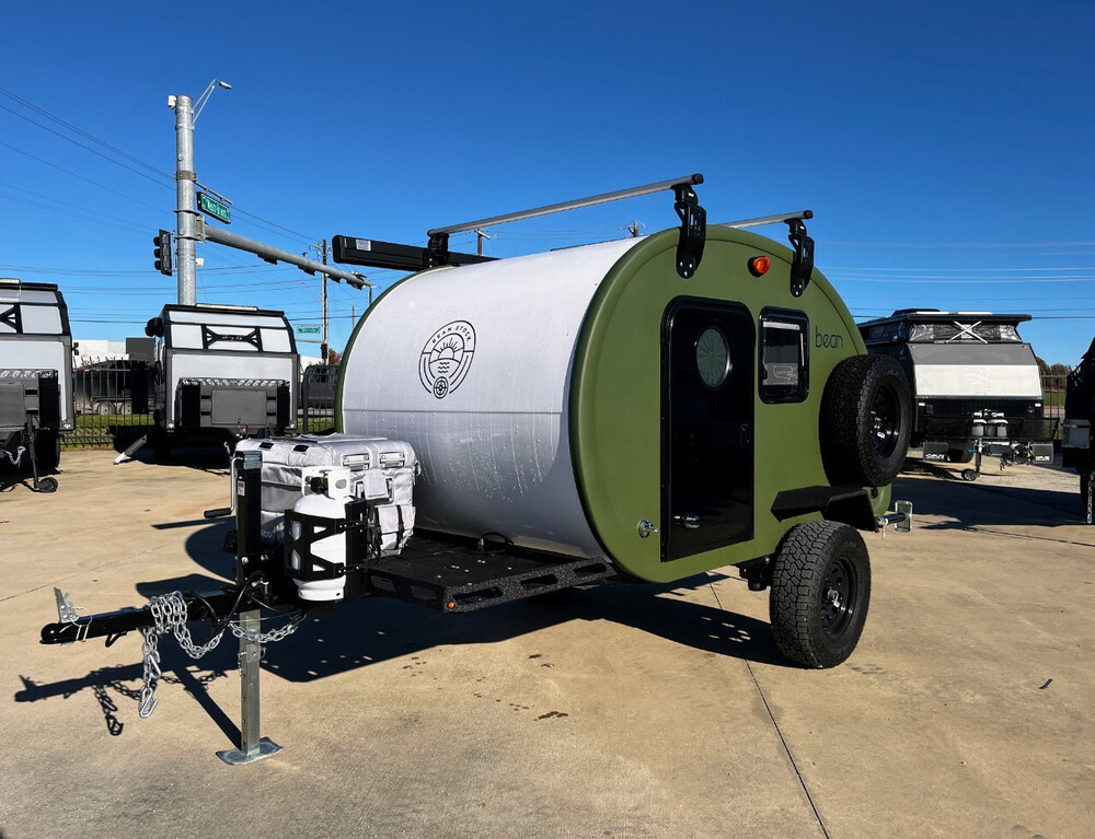 Bean Stock 2.0 Teardrop TrailerThe Bean Stock 2.0 is an off-road trailer designed for campers who value affordability, lightweight construction, and rugged off-road performance. Weighing just 1,175 lbs., this tough yet versatile trailer is built with a durable one-piece composite shell, allowing for easy customization to suit individual camping needs.It features a one-piece fiberglass shell and composite honeycomb sidewalls for exceptional durability. The standard package includes a 2,000-lb. Timbren HD suspension for superior off-road capability.The Bean Stock 2.0 is light enough to be towed by small SUVs, including the Subaru Forester, Ford Escape, Toyota RAV4, Mazda CX-50, Kia Sportage, Ford Bronco, and other vehicles with a minimum tow capacity of 1,500 lbs.