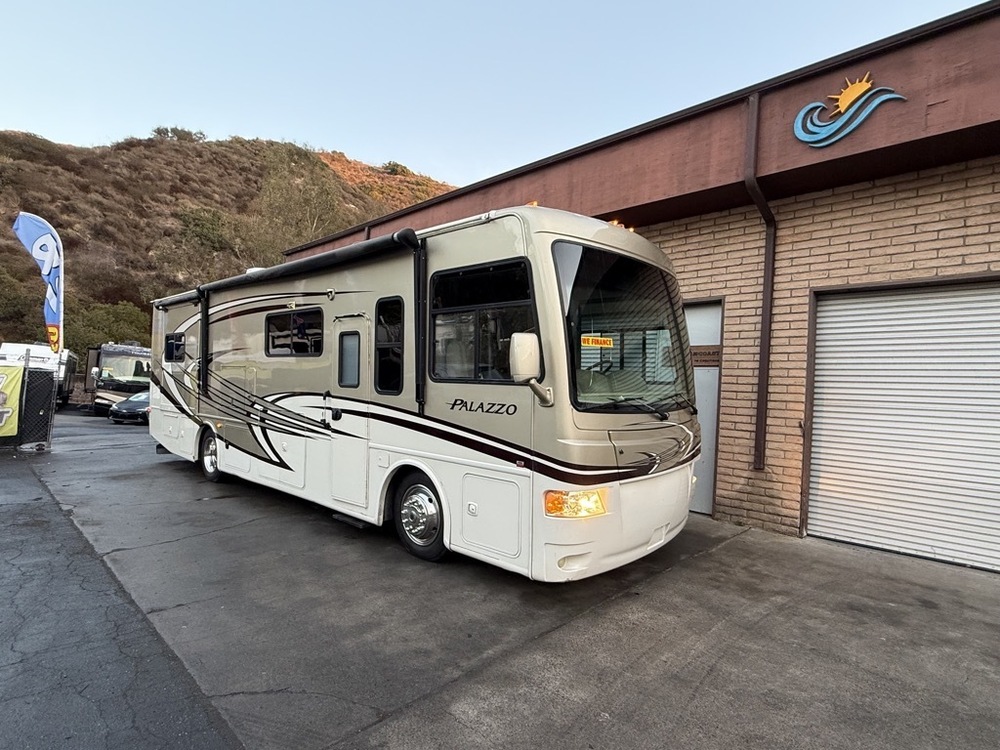 Step into the luxurious and versatile 2013 Thor Motor Coach Palazzo, designed for both comfort and adventure. This diesel-powered Class A motorhome is packed with features that make it the perfect home on wheels.