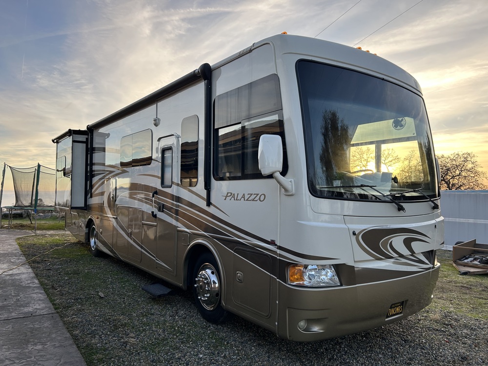 This 34 foot Diesel Pusher is ready to road trip and go camping!