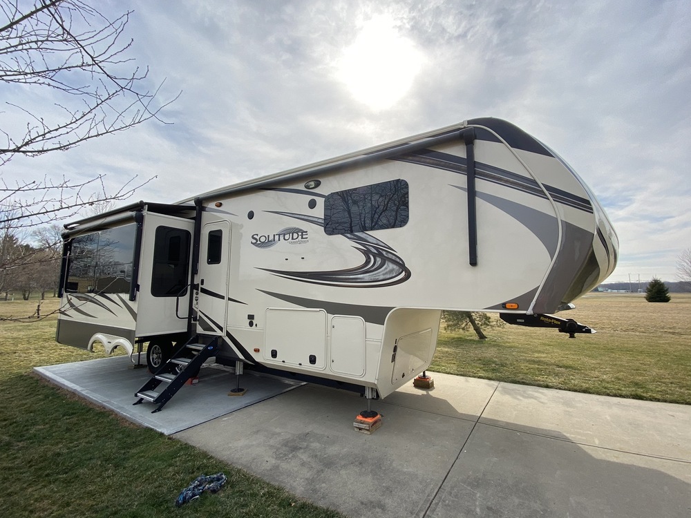 Original owners, very clean, like new. Reason for selling is owners are buying motorhome. This is a pre-Covid built unit. We have towed it with a one ton GMC Sierra Denali. Tires have been replaced once. Plenty of storage. Reclining, heated, massaging leather chairs. Queen size bed. Sleeper sofa. Dinette set with four chairs. Washer/Dryer prepped. Automatic leveling system. Spacious pantry, and overhead storage areas. Televator in living room area and TV in bedroom, beautiful island for food prepping. Very large bedroom closet and under bed storage space. Two basement storage spaces.