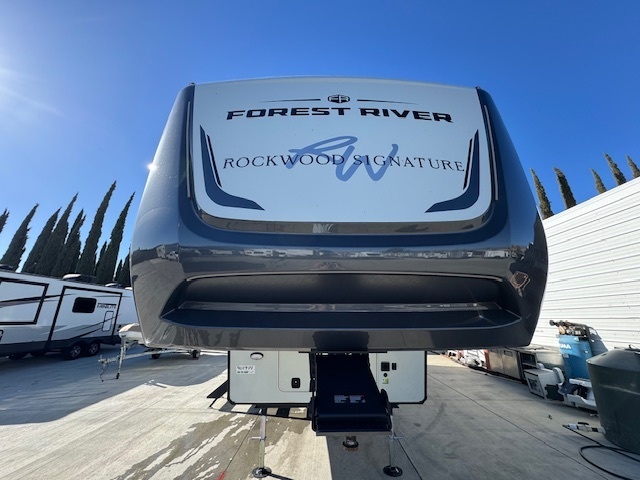 WHEN YOU WISH TO UPGRADE YOUR CAMPING EXPERIENCE, EMBRACE OUR SIGNATURE LINE OF 5TH WHEELS. Elevate your journey with the quintessence of Rockwood's first-in-class quality and exceptional craftsmanship, now augmented by a host of supplementary features to enrich your journey. Anticipate superior offerings such a king-sized bed, effortless electric auto-leveling, shielded metal awning covers, exquisite upgraded solid-surface countertops, and the luxury of residential soft-close drawers. Every Signature 5th wheel now comes with an option for our power package, propelling you to destinations you once deemed beyond reach.