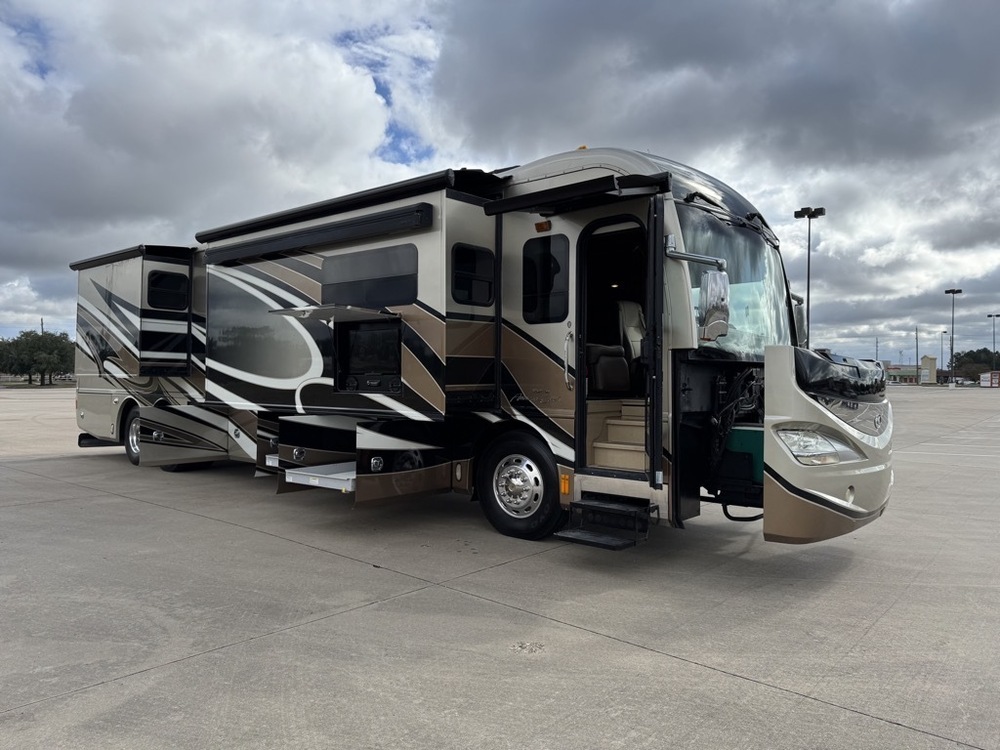 2015 American Revolution 42w, 52k miles , 1.5bath, king bed , 2021 tires , Onan 10k generator 750hrs, auto level, power awnings , stackable washer & dryer, 3 acs, dishwasher. Aqua hot , heated floors , no leaks , non smoker , no pets . New carpet . Fresh oil change on engine & generator . Located at Top Choice RV in Houston, TX