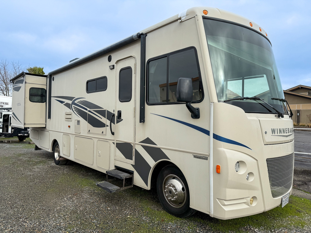 2017 WINNEBAGO VISTA 32YE CLASS A WITH A FORD V10 ENGINE. 54,400 MILES. AUTO LEVELERS, DUAL A/C, ON-BOARD GENERATOR, OUTDOOR TV AND POWER AWNING. GREAT FLOOPLAN, LOTS OF SEATING AND SLEEPING. KING BED AND ELECTRIC OVERHEAD BED. ONLY $49,995 FINANCING AVAILABLE AND TRADE-INS WELCOME! 916-747-1936