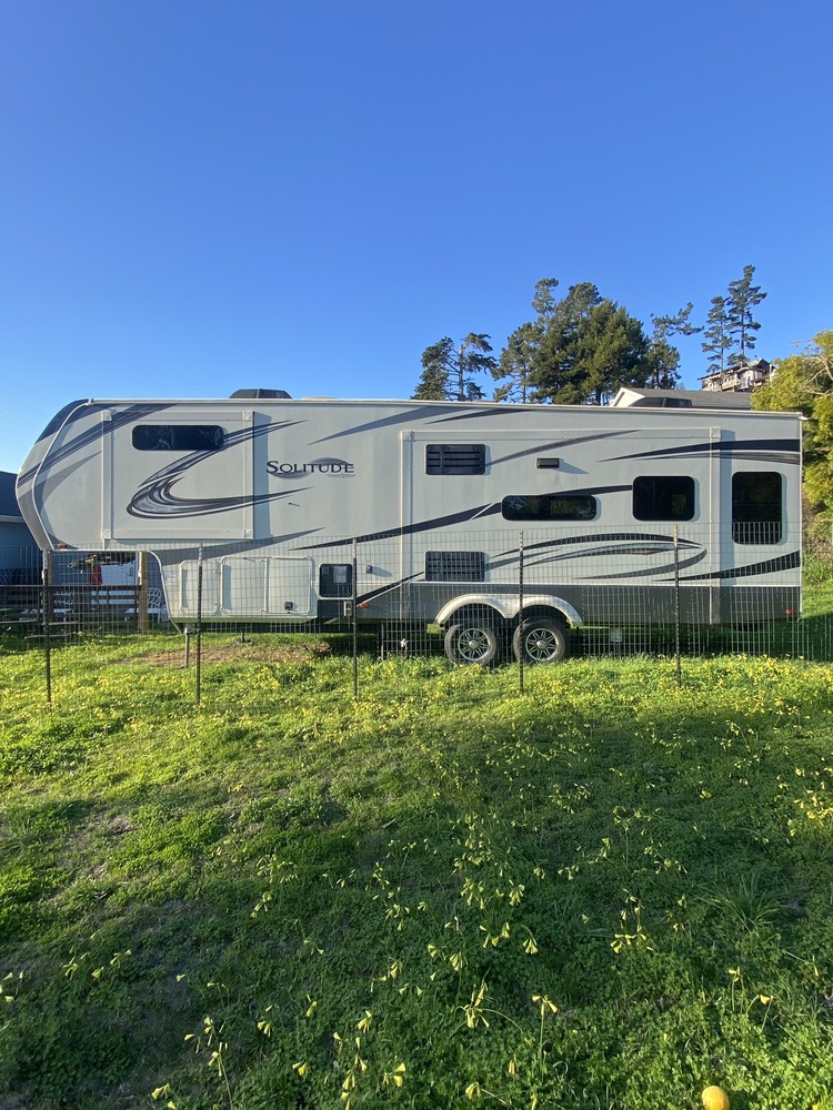 This rig has Large windows, black out shades. The Grand Design Solitude 310GK is a luxurious fifth wheel camper, perfect for those looking to travel in style and comfort. This 2019 model boasts a sleek and modern design, with attention to detail evident in every aspect of its construction. The exterior features a aerodynamic profile and high-quality construction materials, while the interior is spacious and thoughtfully designed for maximum comfort.The Solitude 310GK is the perfect blend of luxury and functionality, with plenty of storage space and modern amenities to make life on the road a breeze. The open floor plan includes a spacious living area with comfortable seating, a large kitchen with high-end appliances, and a cozy bedroom with a plush King-sized bed. The bathroom is no exception, featuring a luxurious shower and plenty of storage space for all your essentials.Traveling in the Grand Design Solitude 310GK is a truly luxurious experience, with all the comforts of home in a compact and stylish package. Whether you're headed out for a weekend getaway or a cross-country adventure, this fifth wheel camper has everything you need to make your journey unforgettable. Don't settle for less when it comes to your travel accommodations - choose the Grand Design Solitude 310GK for the ultimate in luxury and style.