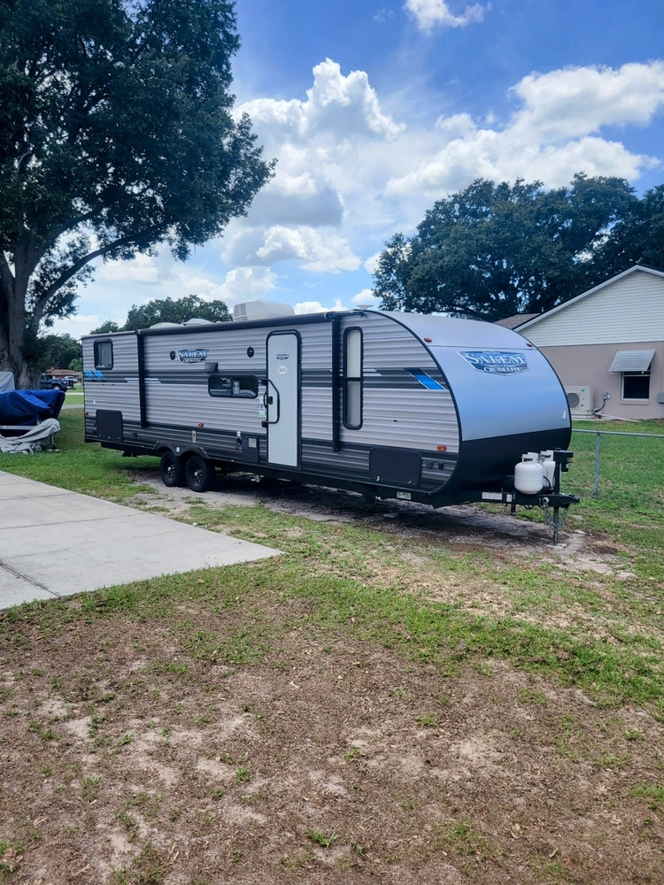 The 2020 Forest River Salem Cruise Lite 273QBXL is a fantastic travel trailer that is perfect for families or groups looking to hit the road and explore. This model offers spacious living quarters with modern amenities and plenty of sleeping room. The interior is designed with comfort in mind, featuring cozy seating, a fully-equipped kitchen, and a clean bathroom. The Salem Cruise Lite is lightweight and easy to tow, making it a breeze to take to your favorite camping destinations. With its durable construction and quality materials, you can trust that this trailer will last for many adventures to come. Whether you're planning a weekend getaway or a cross-country road trip, the Salem Cruise Lite has everything you need to make your journey comfortable and enjoyable. included with this sale are several extras: