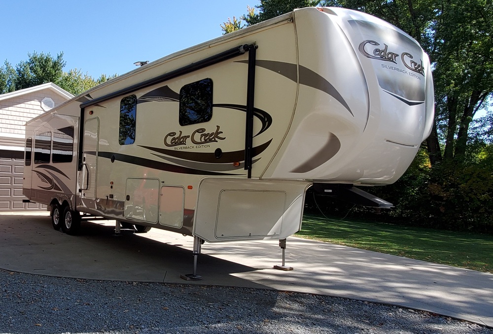 2017 Forest River Cedar Creek Silverback 35ik , 36 Fifth Wheel, 3 Slide Outs, Power Awning, Sleeps 4, Dual A/C Units, Auto-leveling Jacks. Great condition, leather furniture, king bed, kitchen island, New Tires!