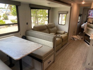 The Forest River East to West Alta 2900KBH is a sleek and modern travel trailer designed for comfort and convenience on the road. This 2022 model features a spacious interior layout with plenty of room for the whole family to relax and enjoy their travels. The Alta 2900KBH is perfect for those who love to explore the great outdoors but still want the comforts of home. Inside, you'll find a well-appointed kitchen with modern appliances, a cozy living area with ample seating, and a comfortable sleeping area with a Twin-sized bed and 2 Recliners along with a fire place. The bathroom is equipped with a corner spacious shower, toilet, and sink for added convenience. Front master KING size bed and rear2 twin Bunks to include a Queen size bed. Sleeps 8-10The exterior of the East to West Alta 2900KBH features a sleek and aerodynamic design, as well as plenty of storage space for all of your camping gear. The included awning provides shade and protection from the elements, outdoor Color TV and Kitchen grilling area for perfect for entertaining and relaxing outside on sunny days. This travel trailer is perfect for weekend getaways or extended road trips, with its sturdy construction and reliable performance. Whether you're exploring national parks, beachfront campgrounds, or remote wilderness areas, the Forest River East to West Alta 2900KBH is the perfect companion for your adventures. With its modern amenities, spacious interior, and durable construction equipped with bottom insulation for cold weather and 2 A/C units, this travel trailer is sure to provide you with years of comfortable and memorable journeys.