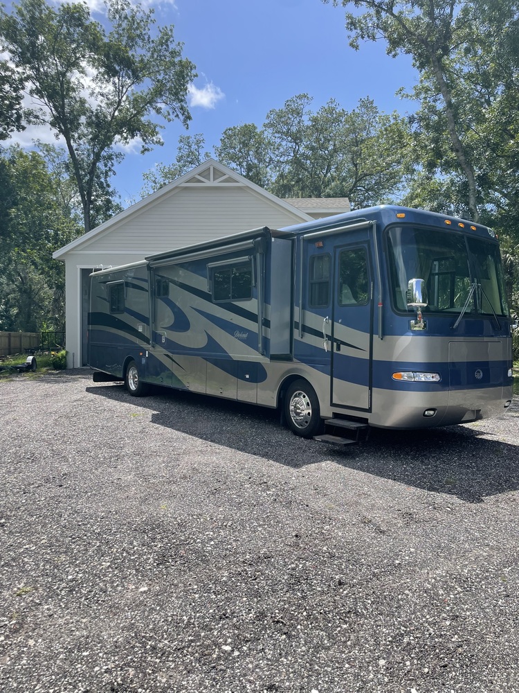 2004 Monaco Diplomat PST ISC 330 hp Cummins diesel engine with 65k miles. 7500 Onan diesel generator with less than 500 hours. 3 Slides. Rig has been garage kept by both owners. I am second owner and have put almost 10k miles on her in the last 2 years and have done all my own maintenance. Tires and batteries are less than 3 years old, Upgraded Shepard steering gearbox, brand new headlights and windshield wipers, complete interior floor remodel with Luxury Vinyl Plank floor and new carpet throughout, King size bed conversion completely rebuilt with enforced slide frame, one year old comfort mattress, brand new sleeper/couch, new kitchen faucet, 2 brand new tvs with modified front tv mount for max headroom. We removed tile floor and stripped it down to the base sub floor, rolled liquid membrane and then installed max foam underlayment and installed commercial grade sterling oak LVP and mold/moisture resistant carpet.