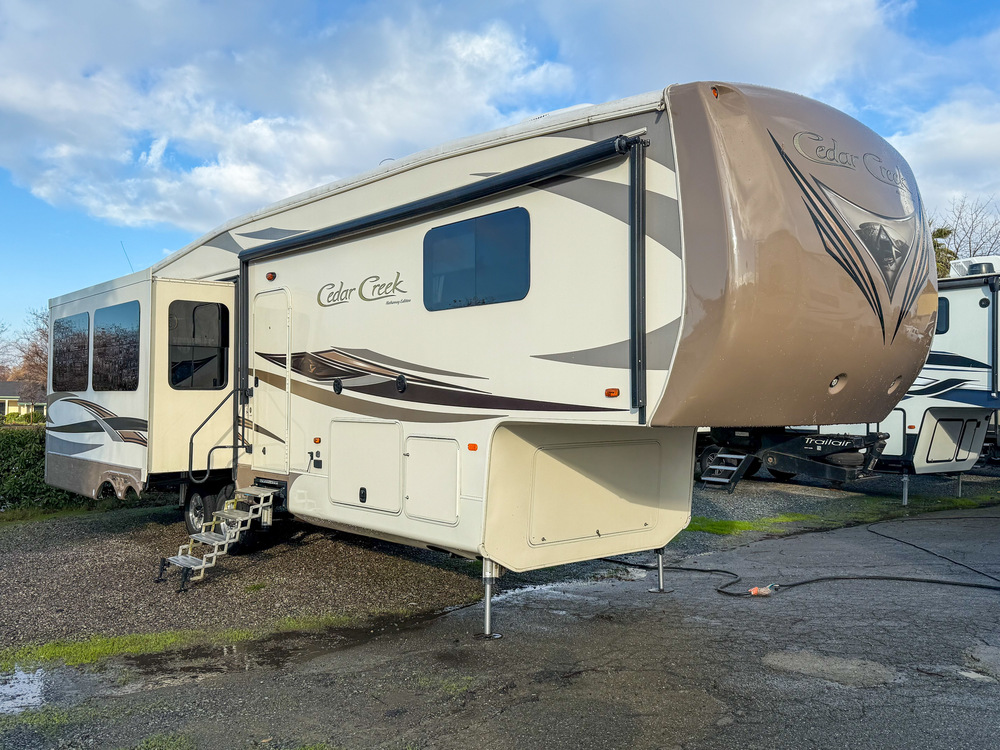 2016 FOREST RIVER CEDAR CREEK 34RE FIFTH WHEEL. 37' OVERALL, 12K LBS DRY AND 15,800LBS LOADED.AUTO LEVELING, 50 AMP SERVICE, DUAL A/C, POWER AWNING AND PASS-THROUGH STORAGE AREA. GREAT FLOORPLAN, L-SHAPE SOFA, HUGE KITCHEN, TONS OF COUNTER SPACE, PRIVATE BATHROOM WITH GLASS SHOWER, KING BED, BIG CLOSET WITH WSHER/DRYER HOOK UPS. MUST SEE... THIS WON'T LAST LONG AT ONLY $29,995 FINANCING AVAILABLE AND TRADE-INS WELCOME! 916-747-1936