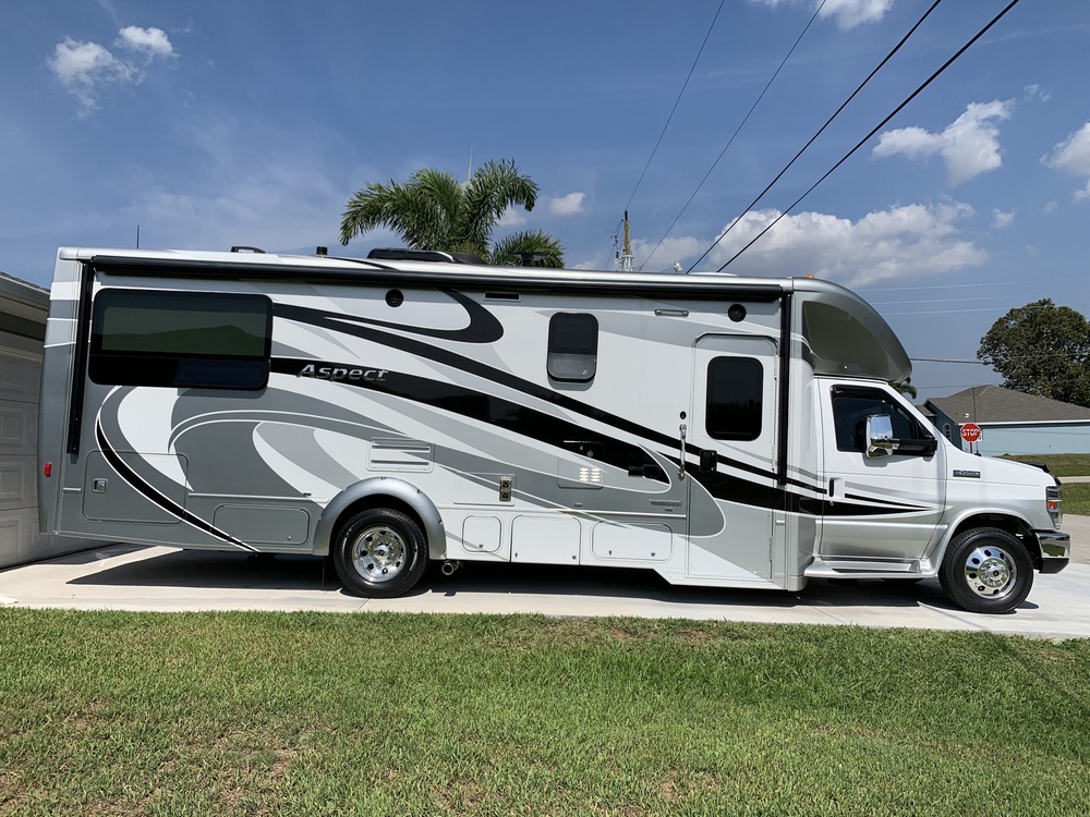 Excellent condition, with all Winnebago Aspect factory accessories; Auto level, awning, dual refrigerator, painted graphics, Onan generator (1 year old carb), tinted windows. Has 2 year old Toyo tires. Additional equipment includes: Tire pressure monitor, We bought it with 10K miles and put 25K on it in about 4 years, so it's completely debugged. Stored under canopy since we've owned it.