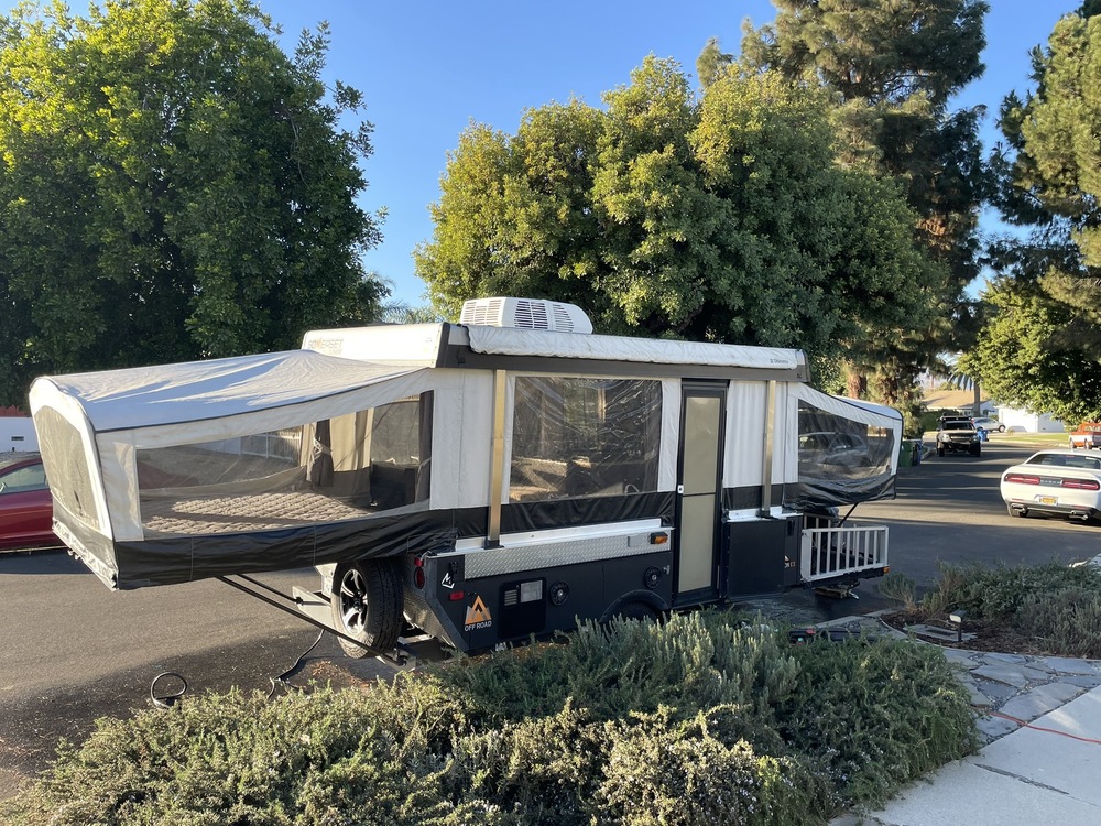 Awesome Off Road 2018 Somerset Evolution E3 Deck by A-liner. This is a great pop-up trailer for any terrain! It features two 77"x70" king beds with high-density foam mattresses, a bench seat bed and a dinette bed that allows for sleeping up to 8. The slide-out dining area creates an extremely open floor plan with plenty of space to move about. Built-in stove, sink, 1.9 cu ft 3-way refrigerator, 6 gallon hot water heater, stereo with inside and outside speakers, 35 gallon heated fresh water tank, portable grey water tank, hoses for sewer hook ups, 16,000 btu heater, cassette toilet with shower indoors as well as an outdoor shower. We installed a new AC unit as well in 2023. Outdoor grill, power and lighting. Set-up is easy with the power lift. The front deck is great for toys or extra gear for camping. 21'9"x7'5" Closed. 26'5"x10'8" Opened.