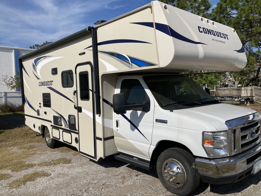 Clean, no accidents, very good condition, and low mileage (11,000). Recently re-upholstered the cab and dining room seats. Add ons: roof vent covers, hot water tank and refrigerator vent covers, and extra sewer pipe storage.