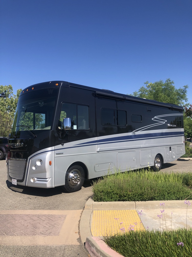 2022 Winnebago Class A Adventurer 29b. Beautiful in great condition and so much storage! Awning with lights, driver side slide, outdoor kitchen prep, out door shower, solar panels, queen bed, master privacy door, propane fire pit, dinette bed conversion, couch bed conversion, overhead drop down full bed. Sleeps 6-8. Auto captain chair with full rotation. Passenger work station with plug ins. Outdoor media. Bedroom tv. Living tv. Induction cooktop and separate gas top. Microwave/ convection oven. Full body paint, interior with gray tones, satellite XM radio, fans, back up camera with side signal, night shades, electronic stability control