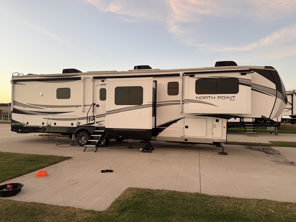 The 2023 Jayco North Point 382FLRB is a luxurious fifth wheel designed for those who appreciate quality and comfort on the road. With only 6000 miles on the odometer, this virtually new RV is ready to take you on unforgettable adventures.The Jayco brand is known for its superior craftsmanship and attention to detail, and the North Point model is no exception. The 382FLRB floorplan offers ample living space with a front living room layout, perfect for entertaining guests or relaxing after a long day of travel. The rear bedroom provides a cozy retreat with a comfortable bed and plenty of storage space for all your belongings.This fifth wheel is equipped with all the amenities you need to feel at home on the road, including a fully equipped kitchen with modern appliances, a spacious bathroom with a shower, and a convenient entertainment center for movie nights. The stylish interior design features high-quality furniture and finishes, creating a welcoming atmosphere wherever you go.The Jayco North Point 382FLRB is not only comfortable but also functional, with features such as a power awning, outdoor kitchen, and ample storage compartments for all your gear. The durable construction and reliable performance ensure that you can enjoy many years of travel in this well-maintained RV.Whether you're planning a weekend getaway or a cross-country road trip, the 2023 Jayco North Point 382FLRB is the perfect companion for your travels. Don't miss out on the opportunity to own this premium fifth wheel and make memories that will last a lifetime. Contact us today to schedule a viewing and see for yourself why Jayco is a trusted name in the RV industry.