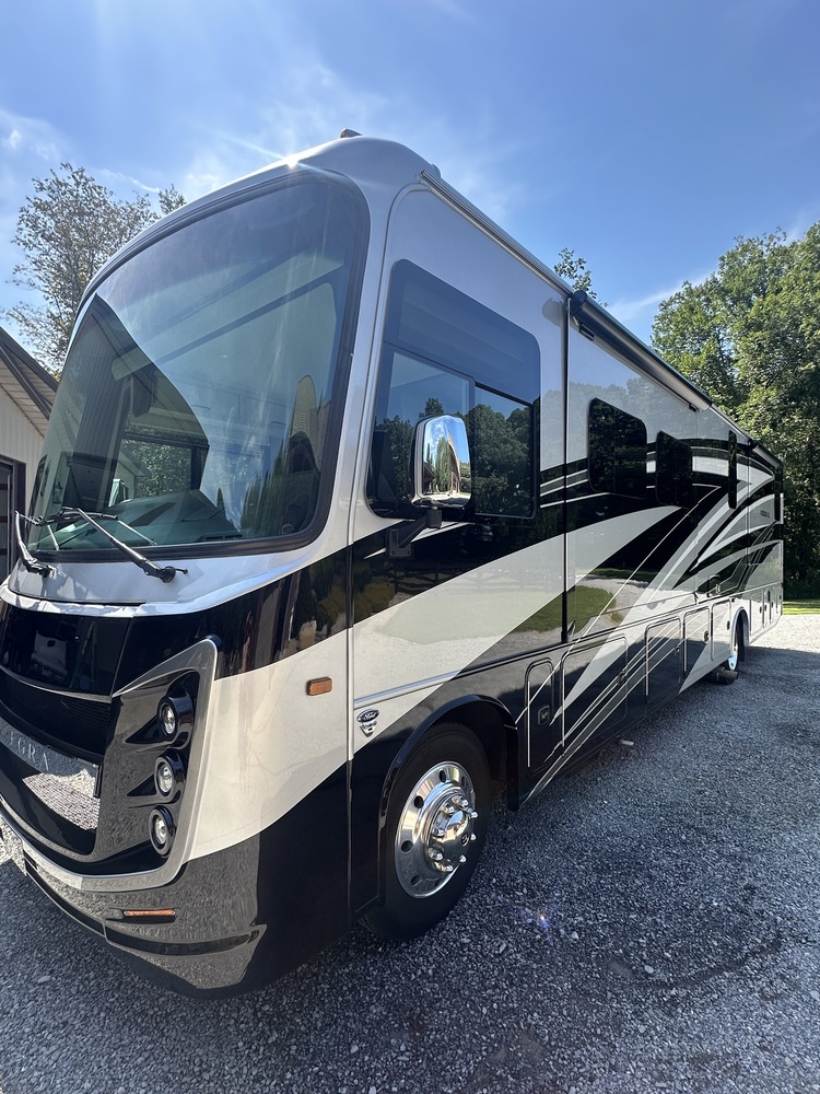 This motorhome was purchased brand new and has a transferable National RV care platinum package warranty that expires 4/2029. Non smokers and kept inside a heated and cooled shop. Washed after every trip and well maintained. Sleeps 8. King bed in primary suite, dinette converts to bed, queen size bunk lets down over driver seat. Living area includes fireplace and 2 recliner sofa along with sofa that pulls out to full size bed.Fire TV's in the living, primary bedroom, and outside. Includes 1 and 1/2 baths. Washer and dryer hookups in the half bath. Kitchen has a full size fridge and microwave over the 3 burner gas stove. Plenty of storage in outside compartments. Blue ox bar towing system. On board generator and solar power. Gas and electric water heater. 2 AC units. Touchpad operation screen and auto level. 3 slides with awning covers. Full body paint! Will entertain including a 2020 Jeep Wrangler with low miles for added price.