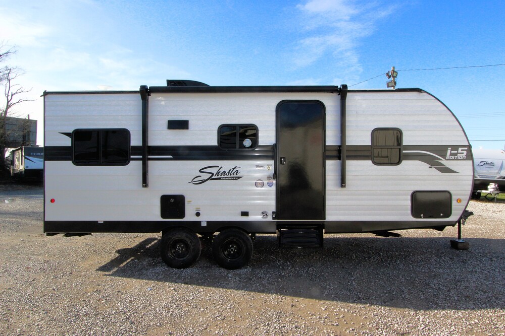 The 2025 Shasta 521CK is a compact, lightweight travel trailer designed for adventurers seeking comfort and convenience on the road. Ideal for small families, couples, or solo travelers, this model combines a vintage-inspired exterior with modern amenities for the ultimate camping experience.