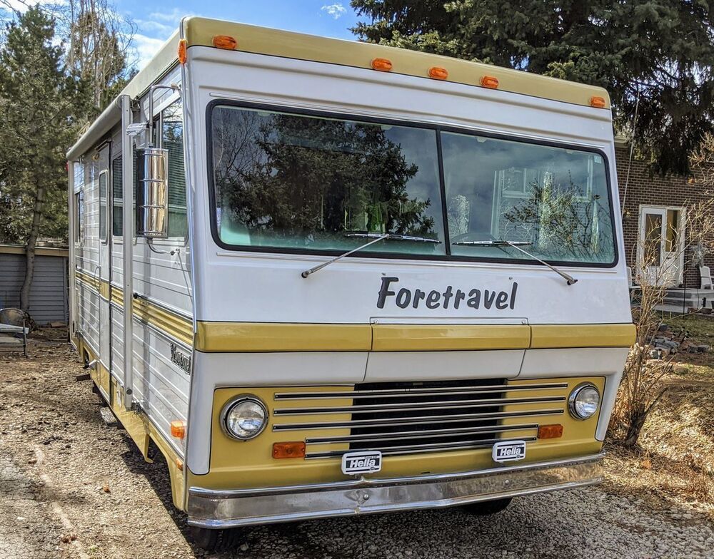 Beautiful, classic 24' RV custom built by Foretravel Motor Homes. We have traveled across country many times in this comfortable, reliable vehicle. It is powered by a Chevy 454 engine and has been lovingly restored with many upgrades including: Dometic AC, Suburban water heater, two 100 amp hour lithium batteries, complete plumbing replacement including waste tank, composting toilet, replaced and re-upholstered seating. Please contact me with any questions you might have.