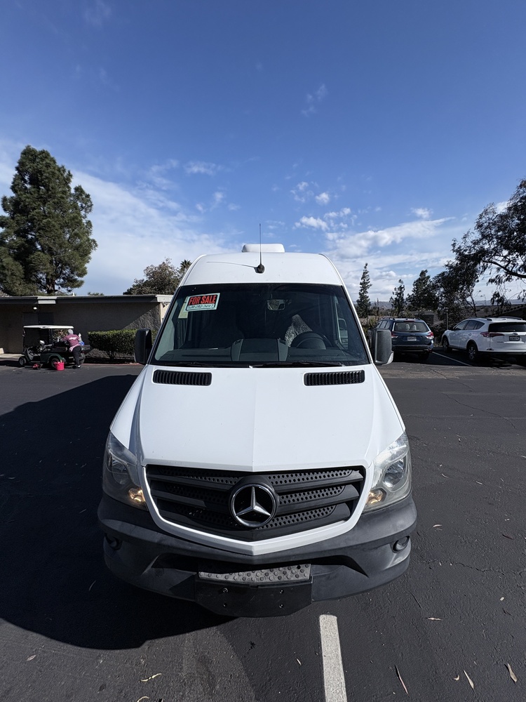 Mercedes White Retrofitted 144x 4x4 2500, 6 cyls with turbo highroof van. Dry camp or shore power. with 3 KW protech diesel generator built in, Dometic air conditioner, solar panel running house battery, interior inverter, microwave, small portable refrigerator, could have a larger one, there is room. Espar heater also runs off diesel tank, just set thermostat. All cabinets and sink made for Mercedes. 15 gal. fresh water tank and 15 gal. grey water tank 30" shower with portapotty to use and sit for shower. I can stand in it but I'm 5'4" tall. Bed in back the width of the van. Microwave. Automatic Mercedes air bags. Payload capacity 2500 lbs. & pulling capacity 5,000 lbs. I'm including a center consul and all electrics for 30-50 Amp plug in. the body is in good shape except for a scrape on the trim on rt. side by back tire. I ordered a replacement but Mercedes sent the wrong piece, I was moving so had to cancel. The piece was quoted as $175. I'll deduct that. Almost 125,000 all highway miles. Last service at 120,000 miles. You service these every 20,000 mi. I love this van but I am no longer on the art circuit so I no longer need it. It has been a terrific vehicle. It's comfortable, stable and easy to drive and with long wheel base you aren't cramped. It has been so awesome!!67,500. Contact Alexandra