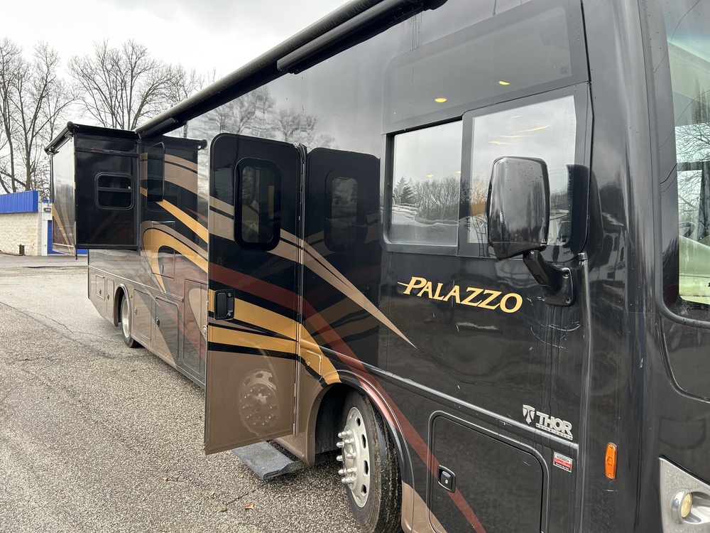 The 2018 Thor Motor Coach Palazzo 36.3 is a luxurious Class A motorhome that offers a spacious and comfortable living experience on the road. With only 14,000 miles on the odometer, this motorhome is practically brand new and ready for your next adventure.