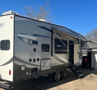 The 2019 Forest River Cherokee Arctic Wolf 245RK4 is a fifth wheel trailer that offers all the comforts of home while on the road. With a sleek and modern design, this RV is perfect for traveling in style. The Arctic Wolf is equipped with all the amenities you could need including a spacious living area, a fully equipped kitchen, cozy bedroom, and a well-appointed bathroom.The living area features good seating, fireplace, ceiling fan and plenty of storage. The kitchen comes complete with a large refrigerator/freezer, stove, oven, microwave, and plenty of counter space and pantry with lighted shelves . The bedroom has a comfortable bed and ample storage for clothing and personal items. The bathroom is equipped with a shower, sink, and toilet.The Forest River Cherokee Arctic Wolf is known for its high-quality construction and attention to detail. With durable materials and top-notch craftsmanship, this RV is built to last for years to come and has been well maintained and kept in covered storage. Added features include professionally installed awnings on slides, installed second A/C unit, rear ladder for roof access, tinting of all windows, back-up camera and solid step entry assist handrail.