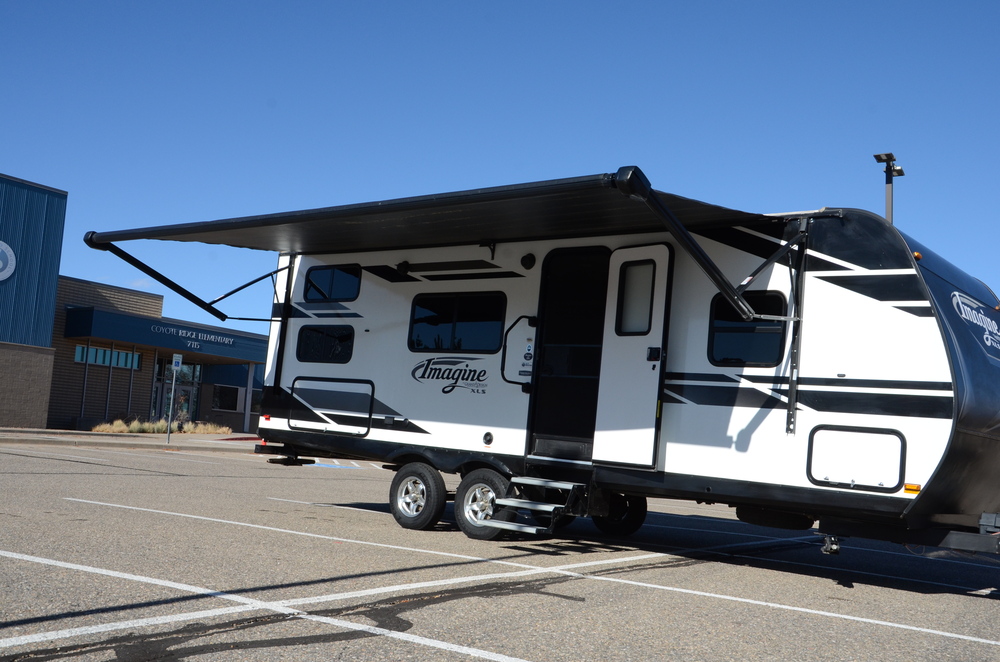 2020 Grand Design Imagine XLS 23BHE Travel Trailer CamperThis is the ultimate family travel trailer! The double wide bunk beds cant be beat. We are only selling the camper because our kids are older now, so we are downsizing. This travel trailer is in excellent condition. It does have normal signs of use. I pull this trailer with no problem with my Toyota Tundra. The camper has brand new tires and a brand new battery. Clear and clean Colorado title.Main highlights:Very spacious Extremely comfortable queen sized bedExcellent storageAll LED lightingHuge awningDouble wide bunk bedsOvenOutdoor kitchen with extra refrigerator Great size refrigerator and freezerBluetooth stereo with outdoor speakersBrand: Grand DesignModel: Imagine XLS 23BHELength: 23 ft. box; 27.92 ft. from hitch to bumperHeight: 10.42 ft.Interior Height: 6.5 ft.Dry weight: 5,296 lbs.Payload Capacity: 1,699 lbs.GVWR: 6,995 lbs.Hitch Weight: 504 lbs.Fresh Water Tank: 43 gal.Gray Water Capacity: 78 gal.Black Water Capacity: 37 gal.Propane Tanks: 2 Slideouts: 1 Electric Drum brakes