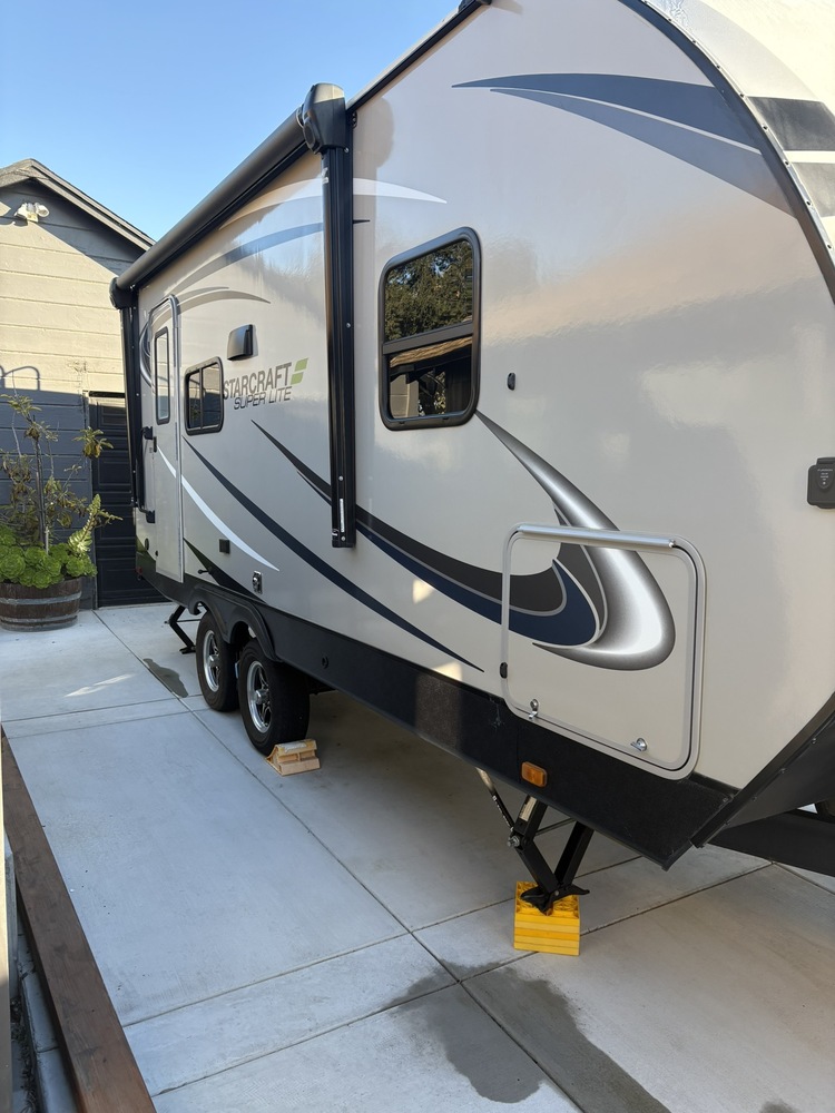 Stylish lightweight design easy to tow very well taken care of/ traveled locally. This is like new large shower very roomy inside with many upgrades. Pop up dining table plenty of outside storage. Awning with led lights and speakers. Upgraded scissor jacks/BAL lockarm stabalizing bar on all 4 corners. Jack for slideout.This trailer is a breeze to tow !! Must see this like new trailer