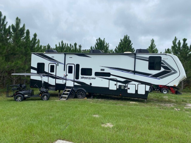 For sale is our 2021 Grand Design Momentum 353G fifth wheel toy hauler. Three air conditioners, 5kw Generac generator, bath and a half, 11' garage. In great condition. Also included in this price is our 2018 EZ-GO gas golf cart. Email or text for more pictures or information. Email - john@campbelldwcs.com Text - 407-319-2367