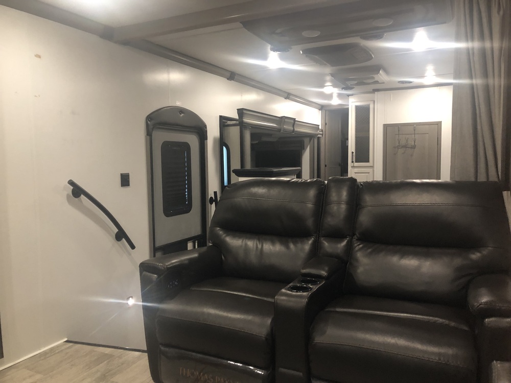 The 2022 Keystone Montana 3761FL is a luxurious fifth wheel designed for those who enjoy the comforts of home while on the road. With only 1200 miles on the odometer, this RV is practically brand new and ready for your next adventure. The Keystone Montana is known for its high-quality construction and top-notch amenities, and the 3761FL is no exception.This particular model features a spacious and open floor plan, with a front living room layout that includes a large sofa, theater seating, and a cozy fireplace. The kitchen is equipped with a half bath, modern appliances, and plenty of counter space for meal prep. The master bedroom is located at the rear of the RV and boasts a comfortable king-sized bed, plenty of storage, and a washer/dryer.Other notable features of the Keystone Montana 3761FL include a residential-size refrigerator, 3 air conditioning units, a central vacuum system, and 2 large awnings for outdoor entertaining. This RV also comes equipped with 2 solar panels, SolarFlex 200 package with 2 lithium batteries and a backup and side cameras for added convenience and safety.Comes with 5 slide outs with protective toppers.Whether you're a full-time RVer or a weekend warrior, the Keystone Montana 3761FL has everything you need to enjoy life on the road in style. Don't miss your chance to own this top-of-the-line fifth wheel and start making memories that will last a lifetime.