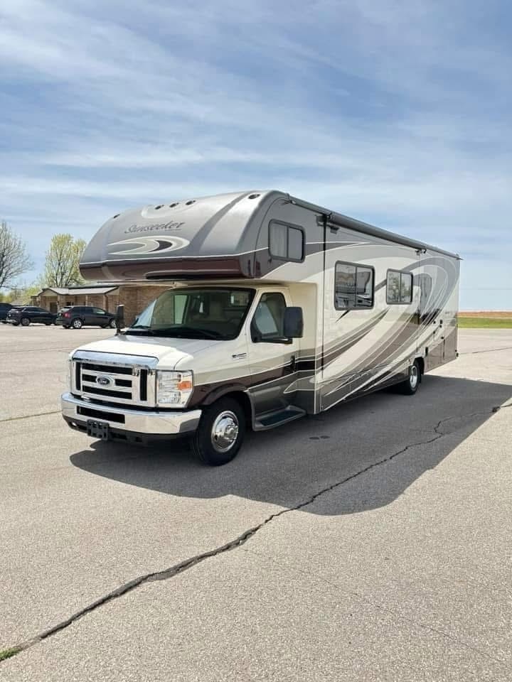 Specs for 2017 Forest River - Sunseeker. Floorplan: 3010DS (Class C). Engine-Engine: Triton / V10. Chassis Brand: Ford. Chassis Model: E450. Cylinders: 10. Miles: 25k. Dimensions-Length: 32.25 ft. (387 in.). Width: 8.42 ft. (101 in.). Height: 11.25 ft. (135 in.). Interior Height: 7 ft. (84 in.). Wheelbase: 18.33 ft. (220 in.). Truck Bed Length (mm): 3. Weight-Dry Weight: 12,400 lbs. Payload Capacity: 2,100 lbs. GVWR: 14,500 lbs. Hitch Weight: 7,500 lbs. Slideouts-Number of Slideouts: 2. Awning-Awning Length: 15.5 ft. (186 in.). Power Retractable Awning: Yes. Beds-Max Sleeping Count: 8. $59,000. Come see it at, 2830 Nw 32nd Street Newcastle Oklahoma. For more pictures, go to our Facebook page, @RVYEAH, or our website rvyeah.com.