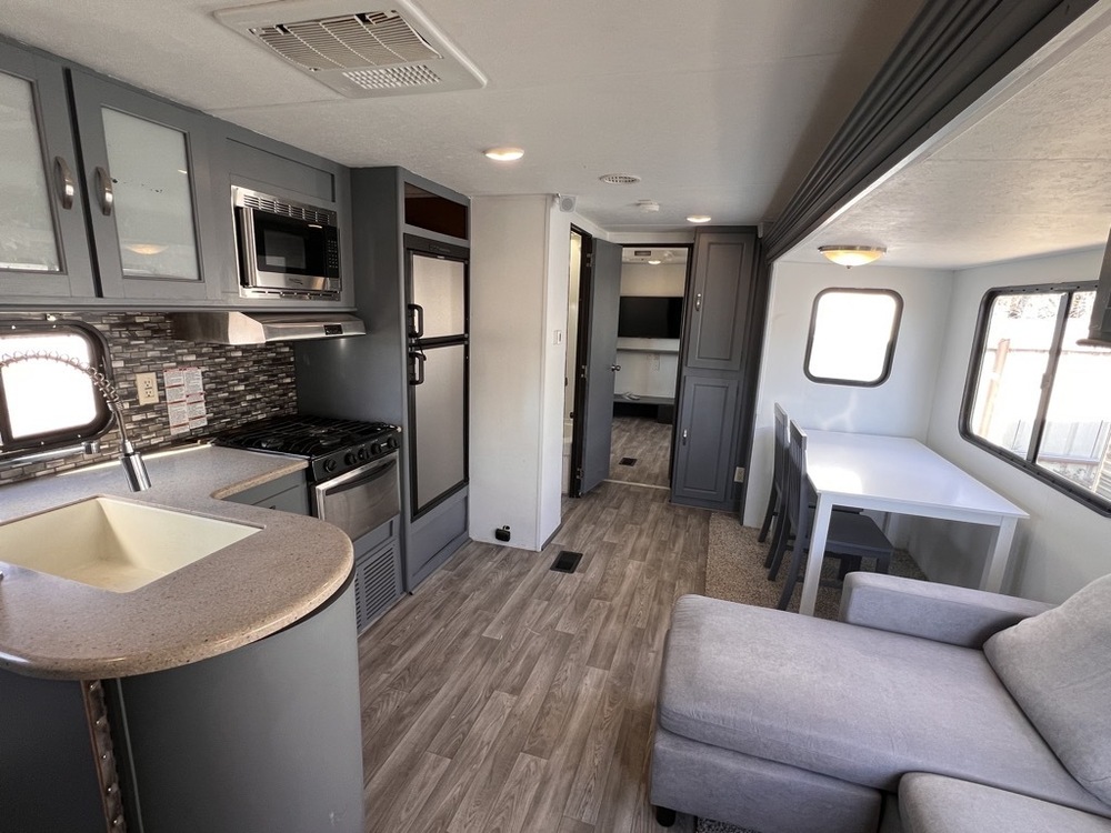 FREE DELIVERY & SETUP!! 2018 FOREST RIVER WILDWOOD 31 QBTS Length 37FT. 3 SLIDES, GREAT FLOOR PLAN. 2 PRIVATE BEDROOMS. WITH 2 SOFA SLEEPER FOR EXTRA ROOM. Spacious Living Room With KING BEDROOM. Bathroom. NEW Dinette & Sofa. Lots Of Storage. Awning With LED Lighting. Sleeps 8, COLD A/C. Super Clean. SUPER NICE TRAILER 8535Lbs UVW.. 50AMP POWER. OUR PRICE $17,995. SEVERAL SUPER NICE RVS TO CHOOSE FROM. We are located in KENNEDALE TX. We show Rv's 7 Days A WEEK. BY APPOINTMENT ONLY. Call BRET 817-805-0067 or AMY 817-658-4633 FREE DELIVERY AVAILABLE TO ALL 48 STATES. WE INSPECT & GO THROUGH ALL TRAILERS TO INSURE OUR CUSTOMERS ARE 100% SATISFIED. FREE DELIVERY & SETUP