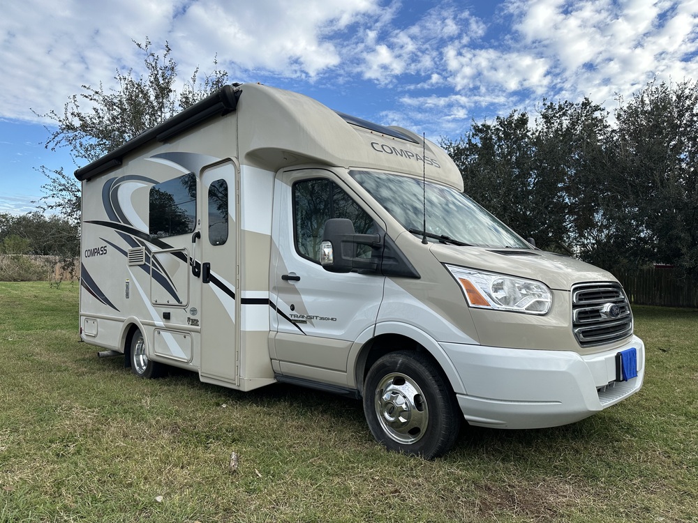 FOR SALE: 2019 Thor Motor Coach Compass 23TW Low Miles, Perfect Condition! Are you ready for your next adventure? This 2019 Thor Motor Coach Compass 23TW is your ticket to freedom on the road! With only 6,175 miles and in pristine condition, this RV is perfect for weekend getaways or extended road trips. I'm selling it because I'm upgrading to something larger, but this beauty has been an absolute joy to own. Key Features You'll Love: Powerful and Efficient Performance Equipped with a reliable Ford Transit PowerStroke® Diesel engine, you'll enjoy smooth handling, great fuel economy, and power wherever your journey takes you. Compact Yet Spacious DesignAt 23 feet, its easy to maneuver yet offers all the space and amenities you need for a comfortable trip. Perfect for navigating cities and exploring off-the-beaten-path destinations. Luxurious Interior ComfortsFull Wall Slide-Out expands your living space for a roomy feel. Queen-Size Murphy Bed: Enjoy a restful night's sleep that tucks away during the day to create more living space. Dream Dinette converts into a bed for extra sleeping accommodations. Fully Equipped Kitchen2-Burner Gas Cooktop and Convection Microwave. Large Refrigerator with separate freezer for all your food storage needs.Ample counter space and a flip-up extension for meal prep.Private Bathroom Spacious shower with skylight for natural light.Modern fixtures and plenty of storage. Entertainment on the Go32 LED TV with swivel for viewing from multiple angles.Bluetooth®-enabled sound system.Convenient TechnologyMultiplex Control System: Easily manage lights, climate, and tank levels from a single panel.Onan 3.2kW Quiet Diesel Generator for off-grid power.Outdoor FeaturesLarge power awning with LED lighting for shaded outdoor relaxation. Ample exterior storage compartments for all your gear.Safety and Driver AssistanceBack-up camera and side-view cameras for effortless parking and maneuvering. Lane-departure warning system for added peace of mind. Why Buy This Motorhome? This Compass 23TW is the perfect balance of luxury, efficiency, and practicality. Whether you're traveling solo, as a couple, or with a small family, it's designed to make every trip memorable. And with just 6,175 miles, it's barely been used! Don't miss out on this amazing deal! Contact me at 713-592-3089 to schedule a viewing or ask any questions. Act fast this gem won't last long! Your adventure awaits!
