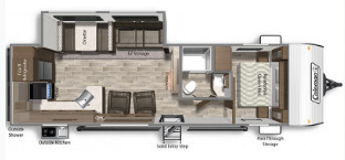 The 2022 Dutchmen Coleman Lantern 286RK is a stylish and spacious travel trailer perfect for your next adventure. The 286RK model provides plenty of living space with its open floor plan layout, including a cozy living area, fully equipped kitchen, and a comfortable sleeping area.The kitchen is equipped with all the essentials for cooking delicious meals on the go, including a stove, refrigerator, and ample storage space. The living area is perfect for relaxing after a long day of exploring, with plush seating and entertainment options.The sleeping area features a comfortable bed and storage options for all your belongings. The bathroom is conveniently located and includes a shower, sink, and toilet. On the exterior, the Coleman Lantern 286RK boasts a durable construction and sleek design. With easy-to-use features like power awnings and stabilizer jacks, setting up camp is a breeze. The exterior storage compartments provide ample space for all your outdoor gear.Whether you're exploring the great outdoors or embarking on a road trip, this travel trailer has everything you need to make your journey comfortable and memorable.