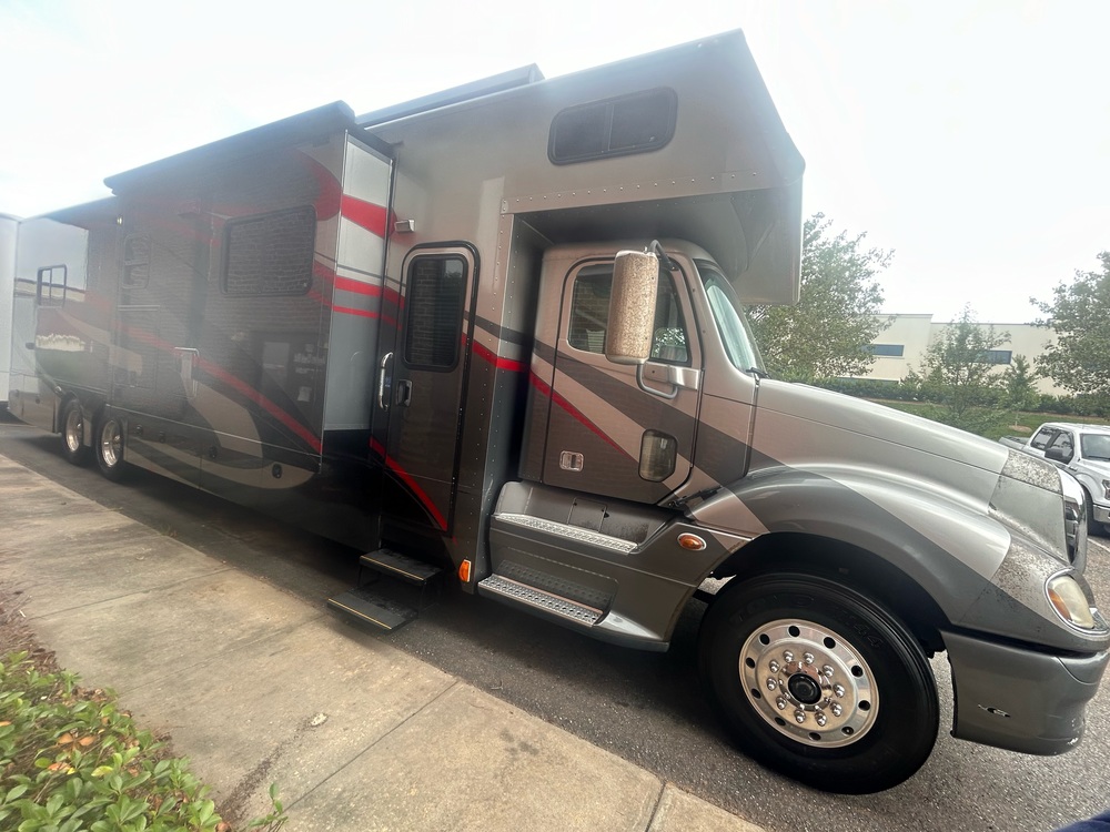 2010 Renegade 45' Ikon Motor Coach Slide-outs: 3 Engine: 450 HP Mercedes-Benz Diesel, 1650 ft/lbs torque Transmission: Fully Automatic 12-Speed Ultra-Shift Twin Screw Mileage: Only 40,000 Miles Coach Weight: 38,540 pounds / GVWR 55,660 Base Features Include: 20,000 Pound Hitch with Receiver Tube 3 AGM House Batteries 4-Point Hydraulic Auto Leveling System Three newly serviced slide-outs: 12 feet, bed slide, and 6-foot closet slide 19-foot Weather Pro awning Sliding cab curtain skylight Appliances: 13 Cubic Foot Refrigerator with Ice and Water - BRAND NEW Microwave / Convection Oven Jenn-Aire 2-Burner Electric Cooktop Norcold Outside Refer/Freezer on Slide Tray - BRAND NEW Central Remote-Style Vacuum Water System: Macerator Toilet 150 Gallons of Fresh Water Two 75-Gallon Holding Tanks Two heat strips 10 Gallon Propane/110VAC Water Heater Fresh water lines run above floor Flow Jet Sewage System Washer/dryer Mechanical Systems: Two Low Profile 15,000 BTU Air Conditioners Front Furnace, 40,000 BTU Three power vents 38.2 Gallon Remote Control LP System 8K Onan Quiet Diesel Generator Gen-Turi Exhaust 2800-watt Inverter Cold Weather Package with Auto Generator Start Outside LP Quick Connect Rear C/S Power retractable shore cord Surge protector with monitor Interior Decor: Ultra Leather Upgrade in Austin Sand - NEW UPHOLSTERY Heated Ultra Leather Captains Chairs, Austin Sand - NEW UPHOLSTERY Flexsteel Dinette, Ultra Leather in Austin Sand - NEW UPHOLSTERY High gloss natural maple cabinets Polished Corian countertops in Maui 21' Polished angle-tiled flooring, Chocolate Special Options: Swivel base to passenger seat Additional Updates and Repairs: New roof seal New awnings Generator serviced Complete waterproofing certification Professionally cleaned interior and exterior Comes with all electrical/sewer/water hookups Stacker Trailer Details: Year: 2013 Condition: Like New, only ever pulled behind motor coach 40K miles Type: Stacker trailer with 6000lb lift GVW: 24,000 lbs Axles: Three 8000 lb axles, all with electric brakes o Winch-assisted rear lift gate o Side entry door o 28 length + tongue, approximately 15 height from ground o Hooked to coach total length 79 o Cabinets in front, storage above in front nose o Exterior awning o Interior/exterior LED lights Coach 225K Trailer 55K pair or separate.