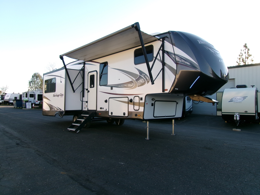 THIS 2018 FOREST RIVER HERITAGE GLEN HYPER-LYTE 286RL 3 SLIDE 5TH WHEEL IS IN LIKE NEW CONDITION WITH A VERY SPACIOUS FLOOR PLAN. THE HERITAGE GLEN IS EQUIPPED WITH A KITCHEN ISLAND, LEATHER RECLINERS, FIREPLACE, DUAL AC, TV, WAHSER/DRYER HOOKUPS, SOLAR READY, POWER STABILIZER JACKS, OUTDOOR SPEAKERS, AND MUCH MORE!! IF YOU WOULD LIKE TO SEE THE BEAUTIFUL HERITAGE GLEN PLEASE CONTACT SCOTT AT 916-225-6218 DEALER #45205 THANK YOU!