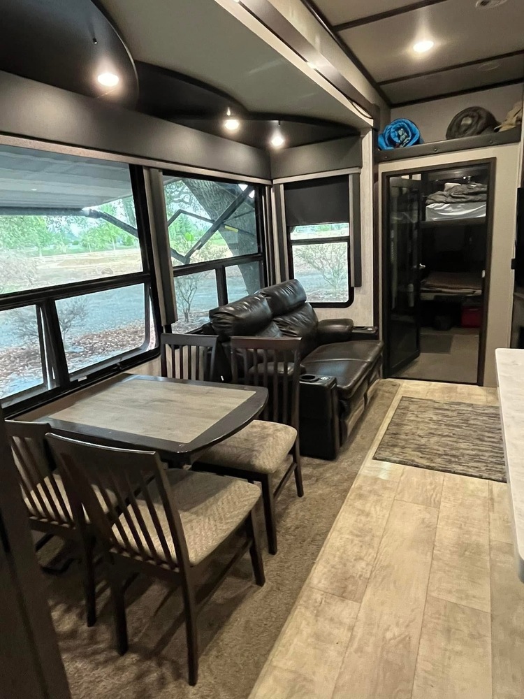 The 2020 Grand Design Momentum 397TH is a luxurious fifth wheel designed for those seeking unparalleled comfort and style on the road. With a sleek and modern design, this RV offers a spacious interior with all the amenities you need for a comfortable travel experience. The Grand Design brand is known for its high-quality craftsmanship, and the Momentum is no exception. This model features a well-appointed living area with plush seating, a gourmet kitchen with top-of-the-line appliances, and a cozy bedroom suite with a large bed and ample storage space. The 397TH trim level includes all the bells and whistles, such as a solar, fireplace, multiple TV screens, outdoor stereo, and a washer/dryer. Whether you're traveling solo or with a group, this fifth wheel has enough space to accommodate everyone comfortably.The exterior of the Grand Design Momentum is just as impressive as the interior, with a sleek and aerodynamic design that is sure to turn heads on the road. The 397TH trim level comes equipped with all the necessary hook-ups for water, electricity, and sewer, as well as 3 large awnings and a rear patio for outdoor entertaining. Overall, the 2020 Grand Design Momentum 397TH is a top-of-the-line fifth wheel that combines luxury and functionality in a beautifully designed package. Whether you're hitting the open road for a weekend getaway or embarking on a long-term road trip, this RV has everything you need to make your travel experience unforgettable.