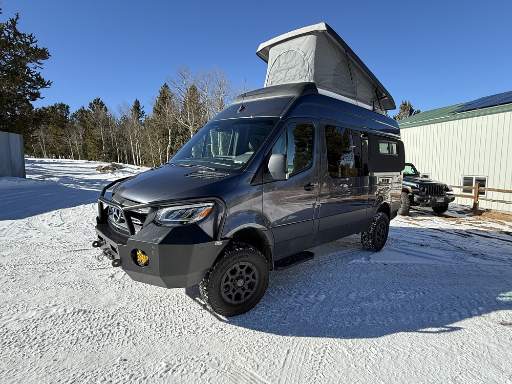 2021 Mercedes Sprinter 144 4x4 2500 High Roof, with SCA Roof Top Tent – Professionally Built by Adrenaline Vans (www.adrenaline-hq.com), this rig is a premium blend of rugged off-road capability and luxurious practicality. It is ready for adventure, work, or family trips. This 2021 Mercedes Sprinter 4x4 2500 offers unmatched versatility, functionality, and comfort.