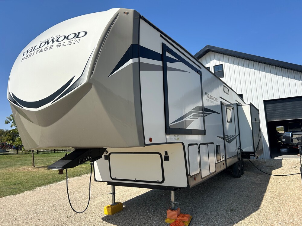 We purchased this camper new in 2022 and have only used it around 10 times total. It is in great condition. The interior of the camper has 2 pull out sofas, RV King bed and loft area for sleeping. It comfortably sleeps at least 9. There is an oversized fridge/freezer, large pantry, and dual AC units to keep the camper cool. The bunk room has a closet, desk area, and sofa with bunk on top. It is great to use as an office or play room for children and can sleep up to 3. There are hookups in the master closet for a washer/dryer. The bathroom has a walk in shower with glass door, linen closet and medicine cabinet. Serious inquiries only, we are located in Sanger/Krum, TX. Please message for additional pictures or information.