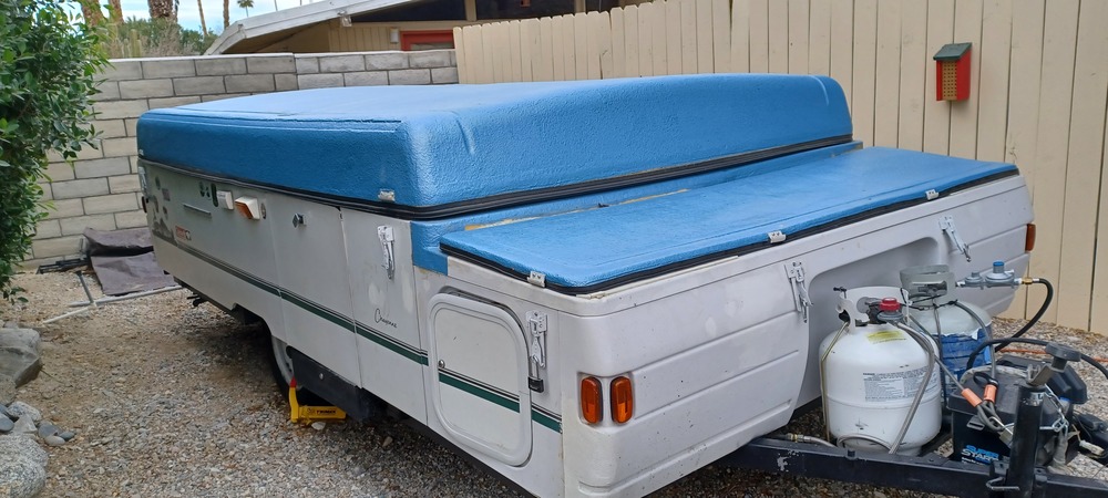 The Cheyenne features a sturdy construction and reliable performance, making it a dependable choice. This popup has been kept in southern California weather, so no mold, rust, or salt damage.The 1999 model year is a durable build. This camper has stood the test of time, and the canvas is in good condition. With its Coleman heritage, you can trust that you're investing in a high-quality vehicle that will provide years of enjoyment. Inside the Fleetwood Coleman Cheyenne, you'll find a cozy interior with amenities for an economical outing. It has a spacious sleeping area and convenient kitchenette with storage. Plus, with its pop-up design, you can easily set up camp wherever your adventures take you. Overall, the Coleman Cheyenne is a top choice for campers looking for a reliable and good value pop-up camper. it has a classic design, durable construction, and comfortable interior.