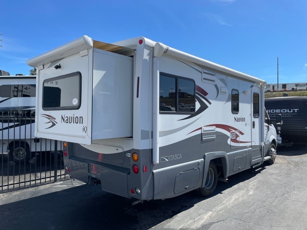 The 2012 Winnebago Itasca Navion 24G is a Class C motorhome with a mileage of 60,000. This versatile and comfortable RV is perfect for family vacations or solo adventures. With Winnebago's reputation for quality and craftsmanship, you can trust that this motorhome is built to last.The Winnebago Itasca Navion 24G features a spacious interior layout with all the amenities you need for a home away from home. The cozy living area is perfect for relaxing after a long day on the road, while the well-equipped kitchen allows you to prepare delicious meals with ease. The bathroom is conveniently located and includes a shower for added convenience.The master bedroom offers a comfortable queen-size bed, providing a restful night's sleep wherever you go. With ample storage space throughout the motorhome, you can easily pack all your essentials for an extended trip. The exterior of the Winnebago Itasca Navion 24G is sleek and stylish, with a durable construction that can handle whatever the road throws at it.Whether you're headed to the mountains for a weekend getaway or embarking on a cross-country road trip, the Winnebago Itasca Navion 24G is ready to take you there in style and comfort. Don't miss out on the opportunity to own this exceptional Class C motorhome from a trusted brand like Winnebago. Upgrade your travel experience with the 2012 Winnebago Itasca Navion 24G today!
