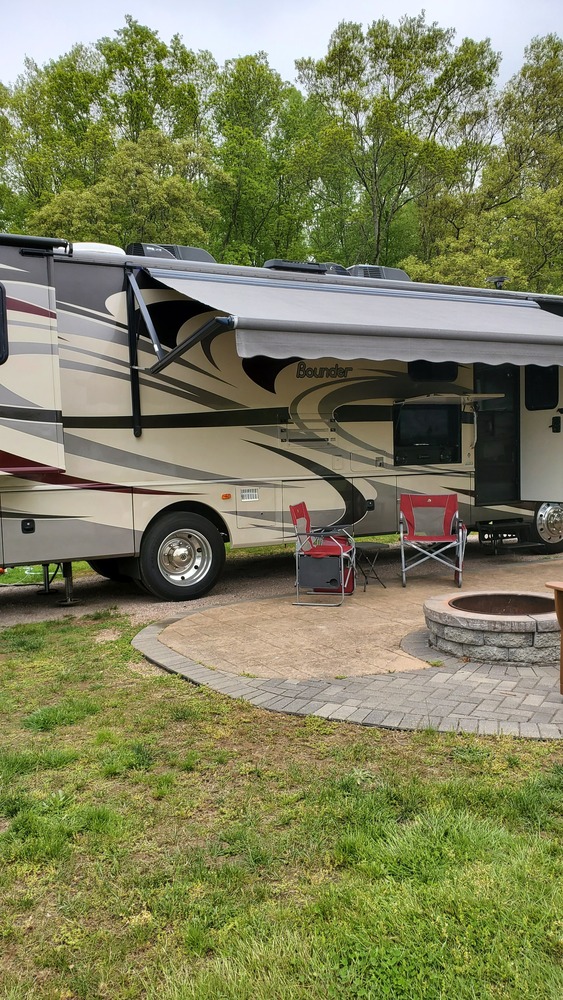 On the exterior, the Fleetwood Bounder boasts a sleek design with a durable construction that is built to last. The large windows and awning provide great views of your surroundings, while the sturdy chassis ensures a smooth and stable ride. New tires in 2019. Including Blue Ox tow bar, just hook up your vehicle and go!