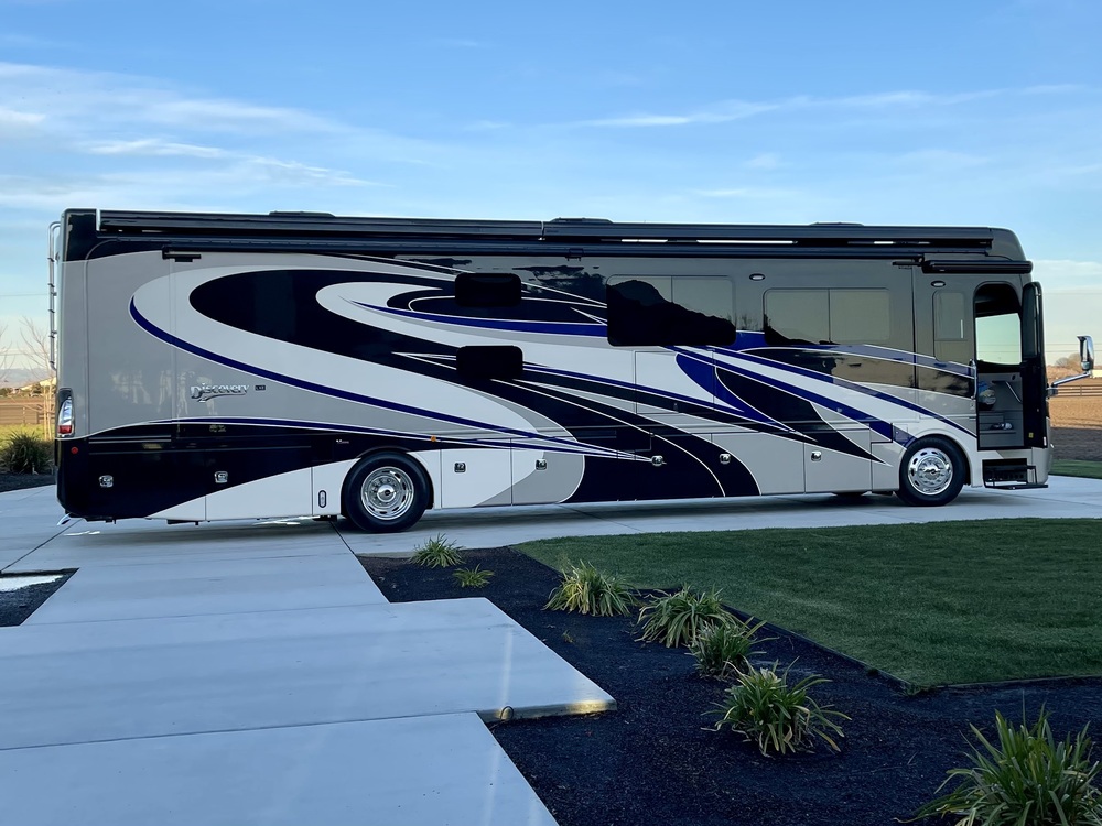2018 Fleetwood Discovery LXE 40G Diesel Pusher: Bunk beds, King bed, 17,300 miles, 2 slide outs - This motorhome is in immaculate condition and has only been stored indoors. The bunk beds are located in an area so it can be made into a bunk room by closing the doors in the hallway. At the end of 2024 we replaced all tires. It it 41’ in length and has a 380HP Cummins diesel engine, 1,150 torque, Freightliner chassis, automatic hydraulic leveling system, 3 roof mounted high efficiency A/C with solar panel & heat pump, 8.0 KW Onan quiet diesel generator, power awnings, pass through storage, central vacuum system, polished porcelain flooring throughout, 3 Tv’s inside, 1 TV outside, BOSE sound bar, DVD player, U-shape dinette that can be converted to a bed, queen sofa with air mattress, residential refrigerator, induction cooktop, adjustable cabinet shelves, dishwasher, galley faucet w/ pullout sprayer, polished solid surface countertop with sink covers, tile backsplash, full size closet in the rear. For additional information please call 209-678-1257.
