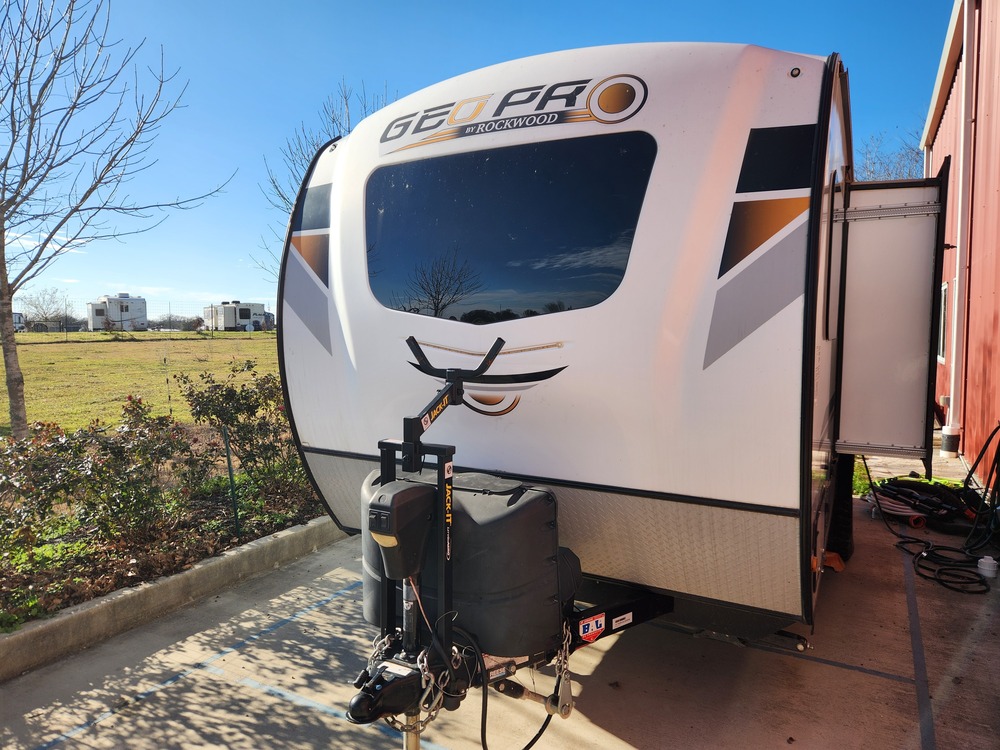 The Forest River Rockwood Geo Pro travel trailer is built to be towed by most "crossover" vehicles and smaller SUVs. Each model is built with six-sided aluminum cage construction, a torsion axle, Rubber-Ryde suspension, and includes a WiFi Ranger WiFi Booster, a power tongue jack, a Water-Pur filtration system.