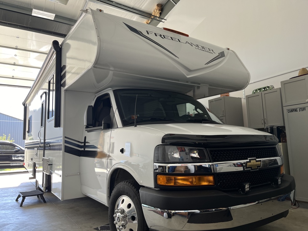 The 2022 Coachmen Freelander 27QB is a Class C motorhome that offers the perfect combination of comfort and convenience for your next road trip adventure. This model is known for its quality construction and attention to detail, making it a top choice for travelers looking for a reliable and stylish RV.With a mileage of only 31,100 miles, this motorhome is practically brand new and ready to hit the open road. The exterior features a sleek design with modern accents, while the interior offers a spacious and luxurious living area. The layout of the 27QB trim is thoughtfully designed to maximize space and provide ample room for relaxation and entertaining.Inside, you'll find all the amenities you need for a comfortable journey, including a fully equipped kitchen with stainless steel appliances, a cozy sleeping area with a queen-size bed, and a bathroom with a shower. The living area is perfect for lounging and socializing, with plush seating and a flat-screen TV.The Coachmen Freelander is also equipped with advanced safety features to provide peace of mind while traveling, such as a backup camera, side fender cameras and a robust suspension system. The reliable engine ensures a smooth and efficient ride, while the spacious storage compartments make it easy to bring along all your gear and essentials.Overall, the 2022 Coachmen Freelander 27QB is a top-of-the-line Class C motorhome that offers a luxurious and comfortable travel experience. Whether you're exploring the great outdoors or embarking on a cross-country road trip, this RV has everything you need to make your journey unforgettable.Also included are the upgrades listed below105 gallon fresh water tank under the queen bed2 additional Coach Batteries 2 new fog lights on front bumper2 additional utility lights in the basement3 new max-air vent coversnew bug deflector on hoodspare wheel and tire mount slide in with extra hitch130 watt solar panel