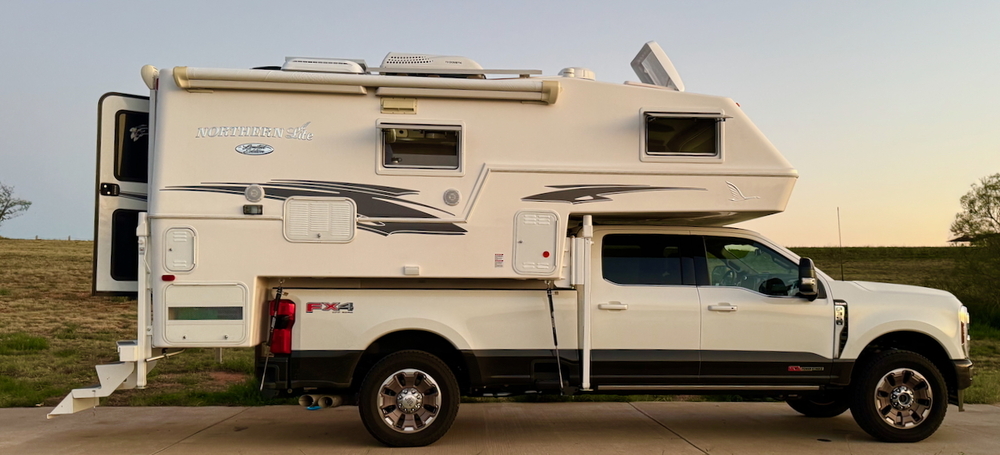 This Northern Lite 10-2EX Limited Edition camper is perfect for your long-bed single or dual-wheel truck. We used a Ford F350 long bed single rear wheel truck with no issues. Our bed payload, FYI, is right at 3995 lb. Put on airbags and inflate to 65# and works great.