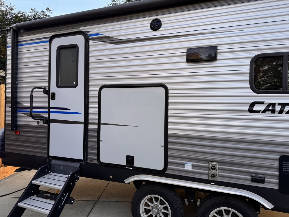 For sale a 2020 Coachman Catalina SBX 241 RLS. Spacious interior with rear living area and entertainment system. Couch and dining table become additional sleeping areas. Master bed is a very comfortable upgraded Queen mattress. Bedroom has good storage for hanging clothes as well as additional storage space under the bed. Exterior of the unit has speakers, lighting and an exterior refrigerator with additional storage space. Included extras include load sharing tow hitch with anti-sway bar, water hose with pressure regulator, RV electric surge protector, upgraded shower head and upgraded mattress. Price is firm