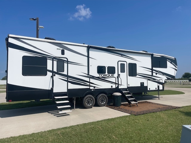 Everything You Need – and More! This fully-equipped RV comes with ALL extras included: 2 sets of bath towels, complete kitchen supplies (plates, cups, silverware, utensils, coffee pot, trash can, pots, pans, travel-size Blackstone grill), 3 sets of bedding, 3 TVs (2 non-RV brand), mini fridge in the garage, and more.